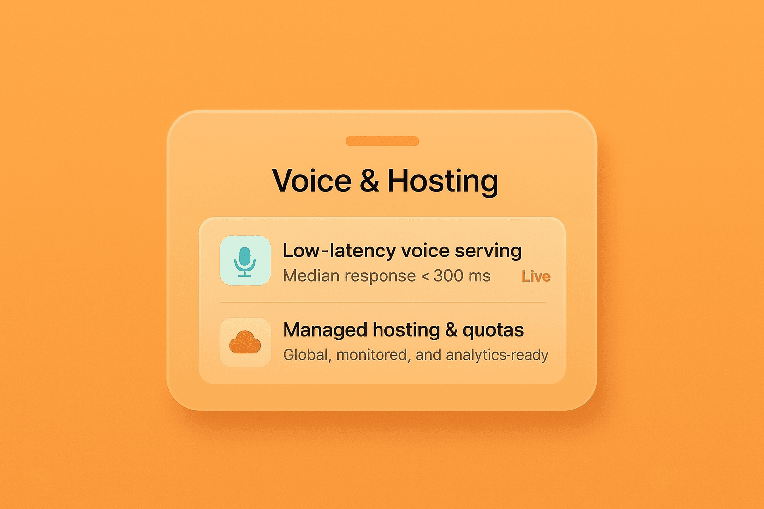 Drop in on‑device modules, safe voice, personality training, and managed serving. Your teams keep building; we power the AI.
